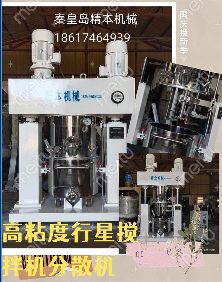 行星攪拌機(jī)通常有2個(gè)或3個(gè)多層折頁(yè)式槳葉,槳葉在公轉(zhuǎn)的同時(shí)也自轉(zhuǎn),使物料上下及四周流動(dòng),從而可在很短時(shí)間內(nèi)達(dá)到混合效果。行星攪拌機(jī)缸體內(nèi)壁為大型立車精加工,再經(jīng)大型拋光機(jī)自動(dòng)拋光,確保行星架上的活動(dòng)刮刀在旋轉(zhuǎn)時(shí),把缸體內(nèi)壁上的物料完全刮掉;該機(jī)特別適合膏體、高黏度、高密度的物料溶解、混合、混煉、聚合等。